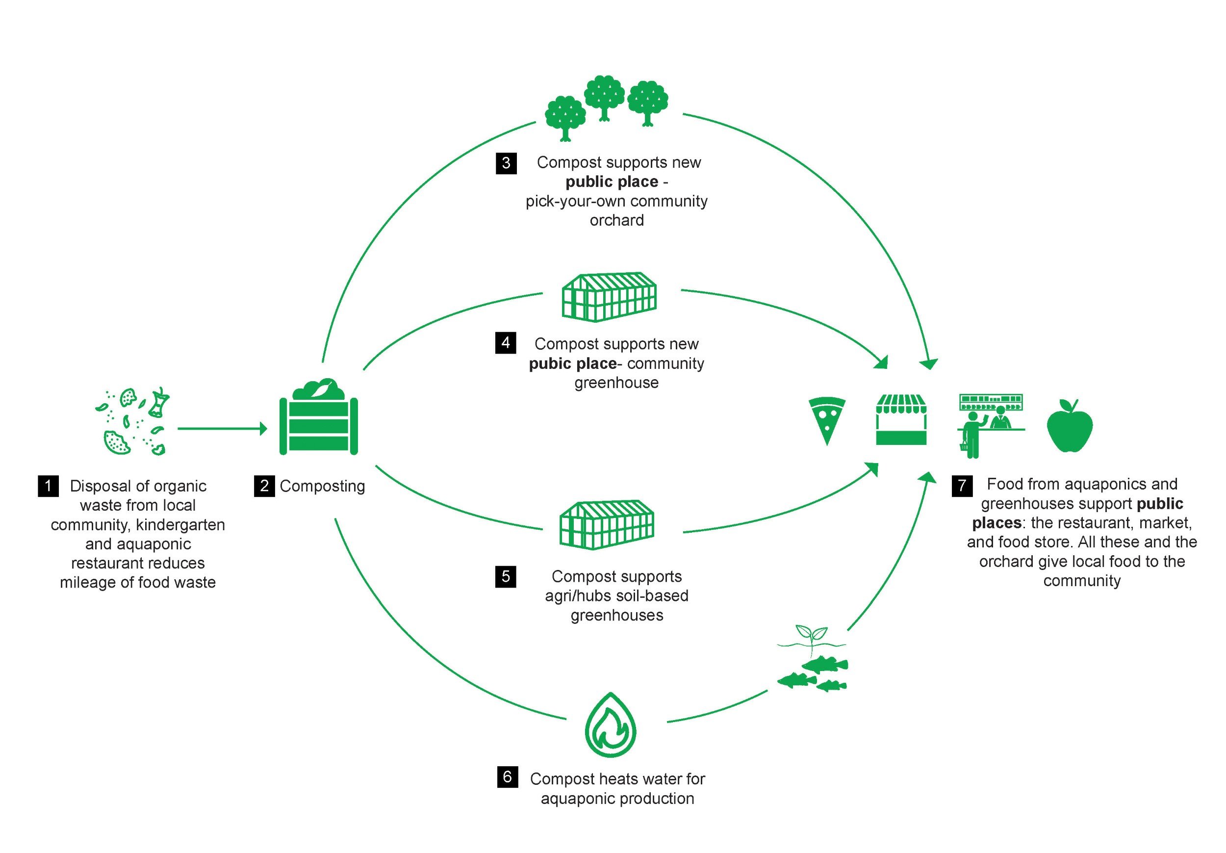 An initiative to produce compost from the surrounding community to reduce food miles for projects such as the community orchard and rooftop greenhouse. Can also be used for heating aquaponic areas.