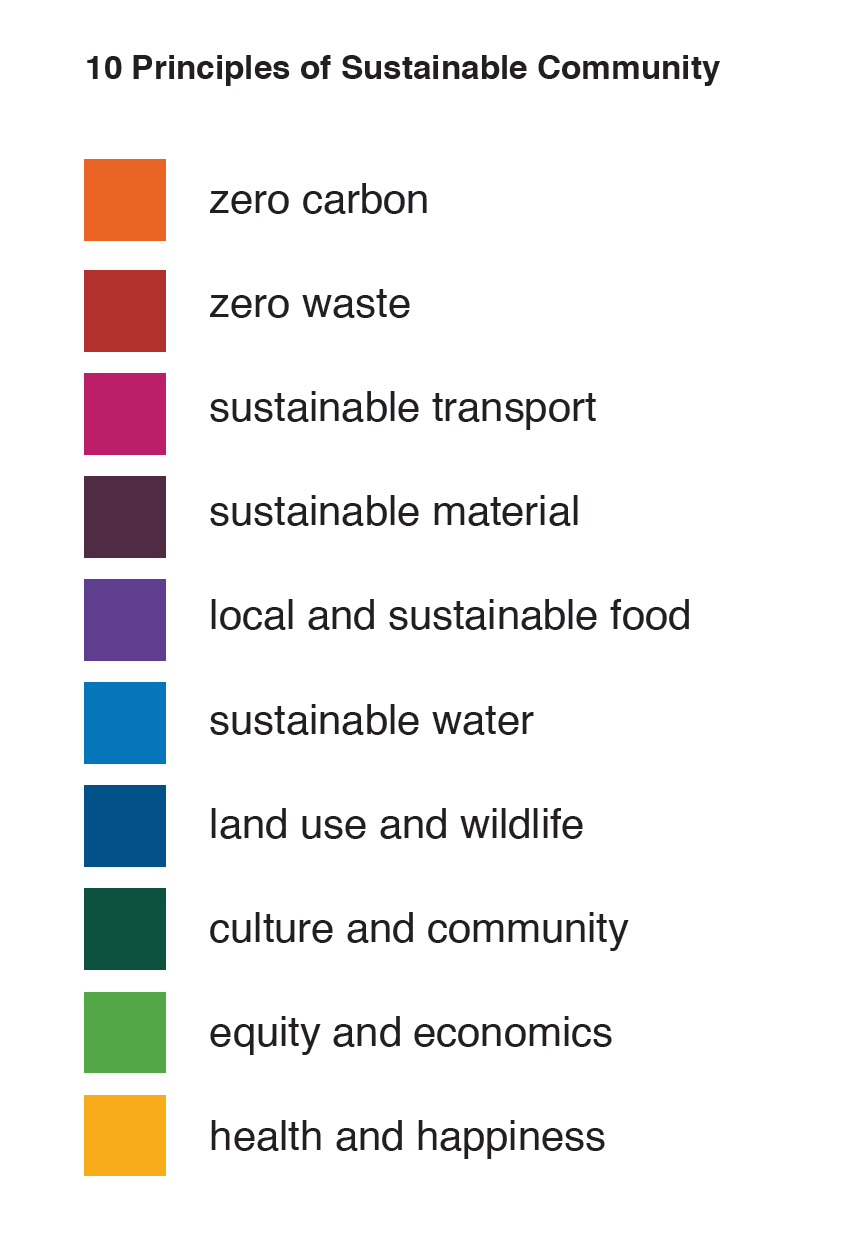Eco-villages adhere to many points outlined in the Ten Principles of Sustainable Community. The ten principles have been used as a guide for decision making throughout the project.