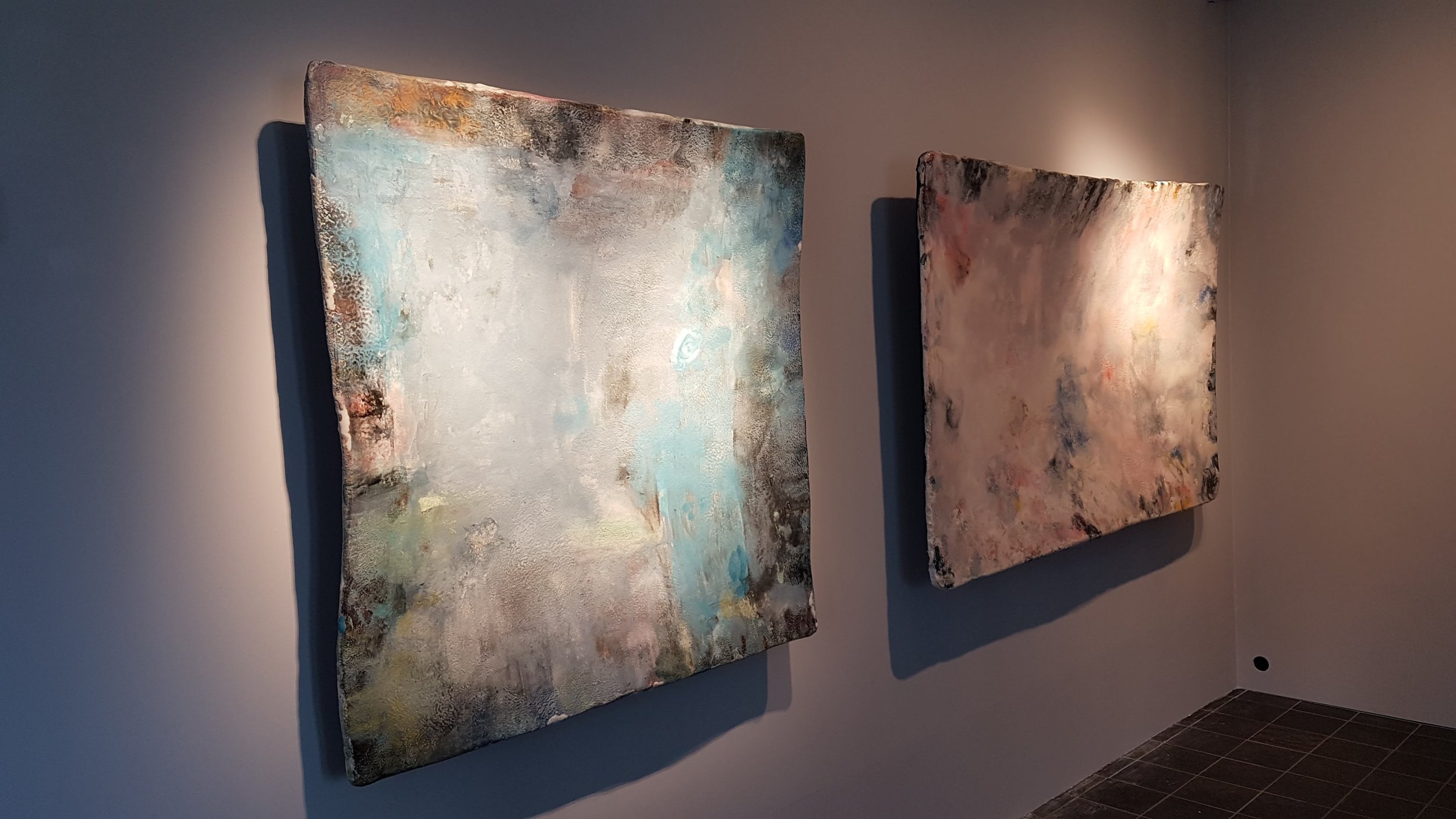 That promise has clearly been kept. The pieces on display are monumental in scale, especially considering their material. Each wall-mounted earthenware work weighs around 100 kilograms and measures nearly two metres in length. Installing them requires a small crane and considerable effort.