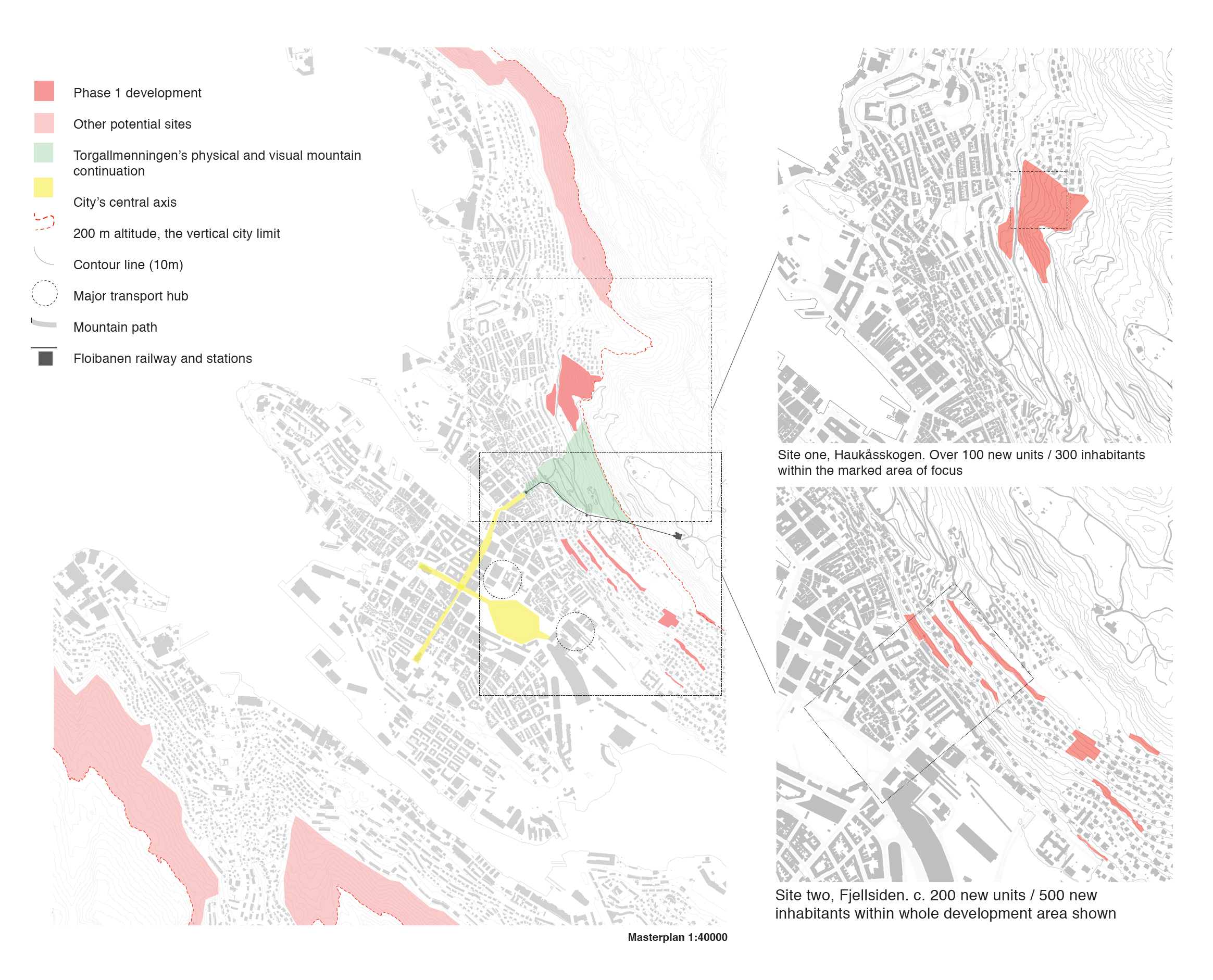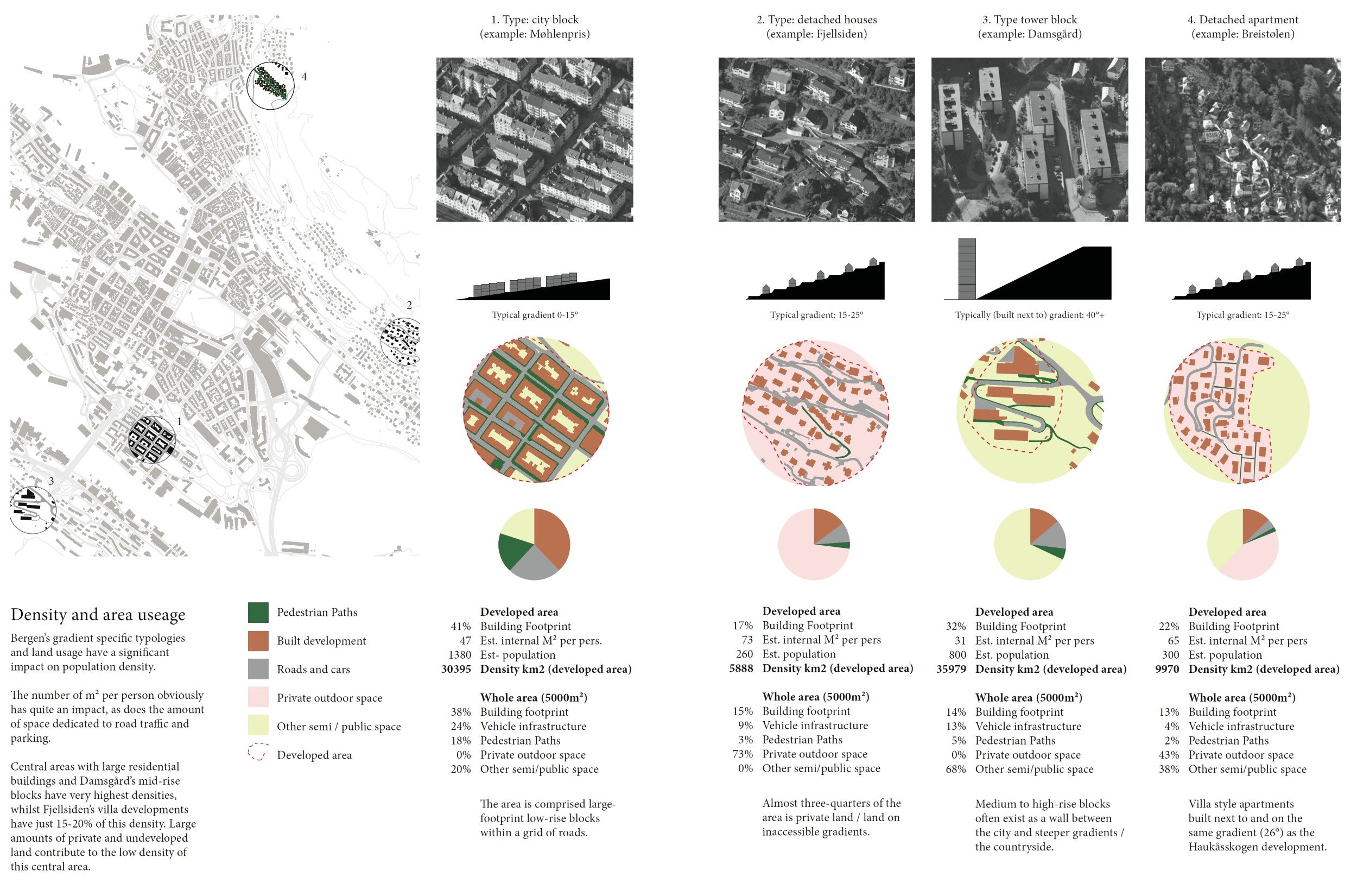 The majority of workspaces and cultural activities are in the centre, so commuting from outer reaches generates pollution and traffic congestion. To combat this inefficiency, we have to find ways to densify Bergen's centre.