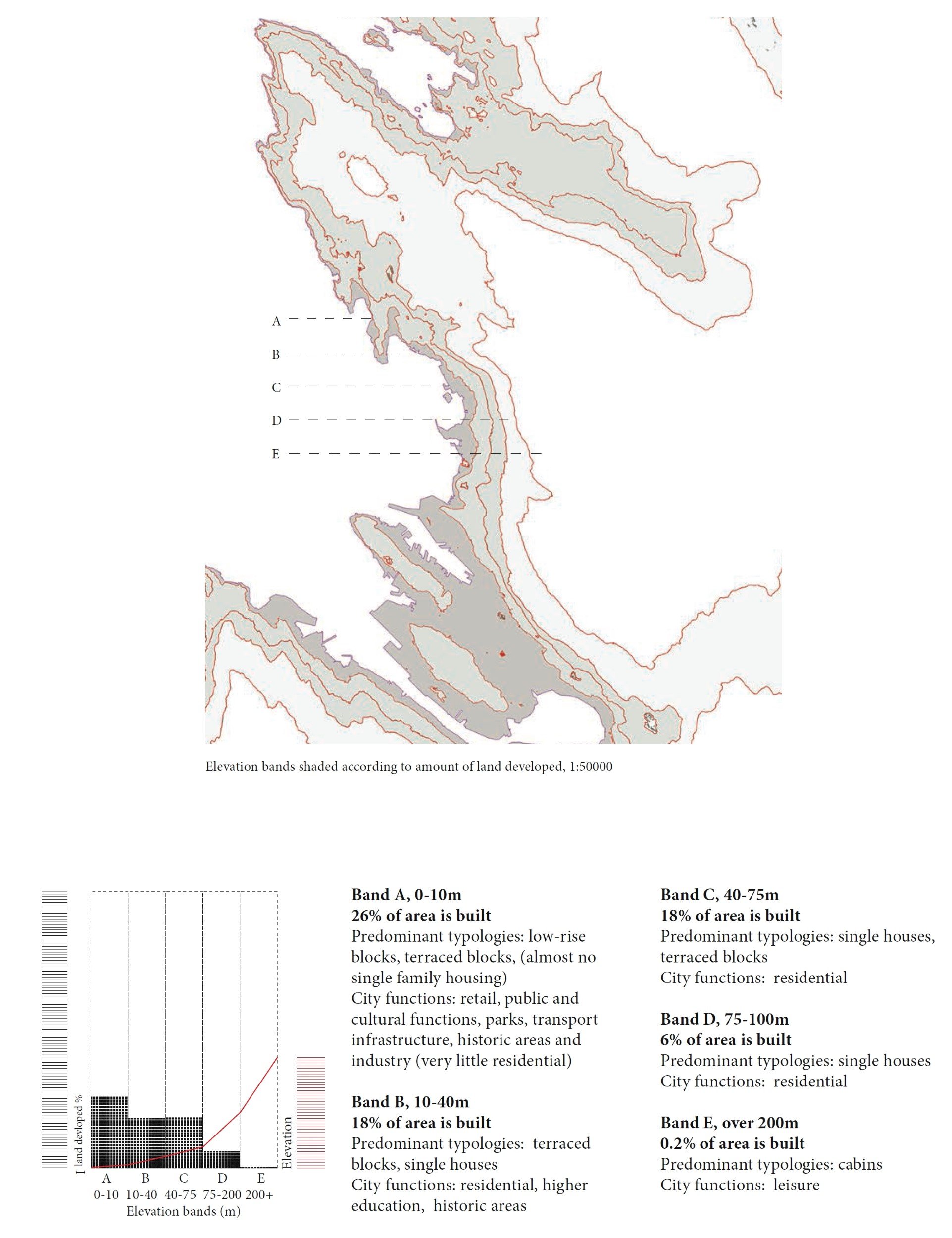 City functions and transport infrastructure vary according to altitude and gradient